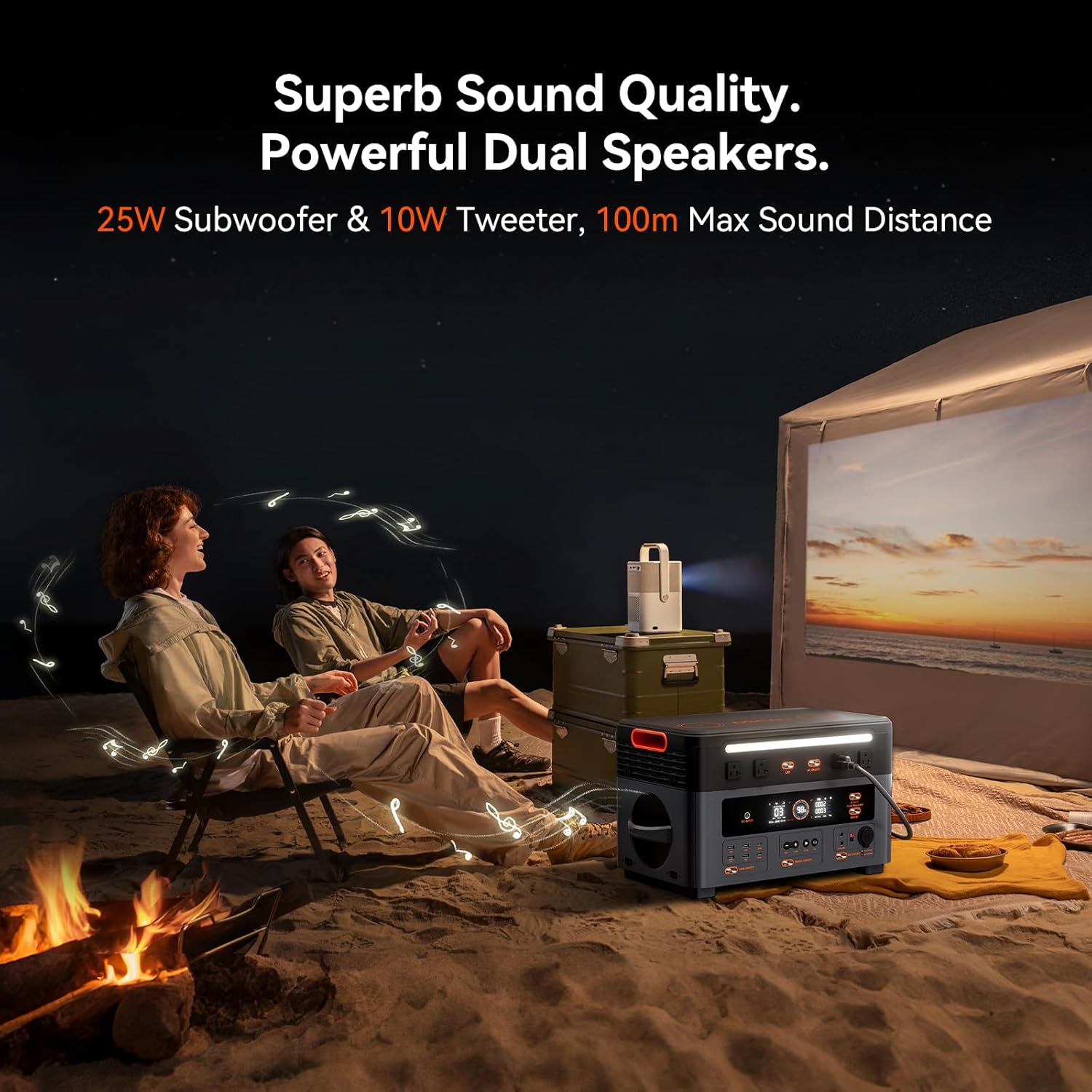 🔊【Innovative Built-in Dual Speakers, Strip Emergency Lights】OSCAL Powerstation has unprecedentedly installed two speakers, high and low, on Powermax 2400Pro, with delicate sound quality, no need to carry additional audio equipment when camping outdoors.With the large sound cavity design, the volume can cover a range of 100 meters, and get up and dance with your friends! The strip light design not only provides a wide range of illumination, but also supports Morse code frequency blinking to release SOS messages in times of emergency!