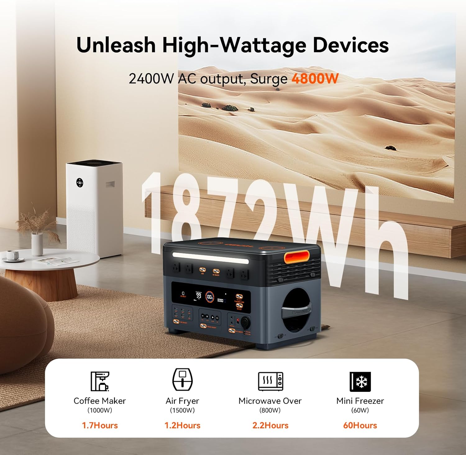 🔋【High Capacity Power Solution】The OSCAL Powermax 2400 solar generator has a total output power of 2400W, a peak power of 4800W and a capacity of up to 1872Wh, which can easily meet 99% of the power needs of emergency generators at home, outdoor camping and small businesses.