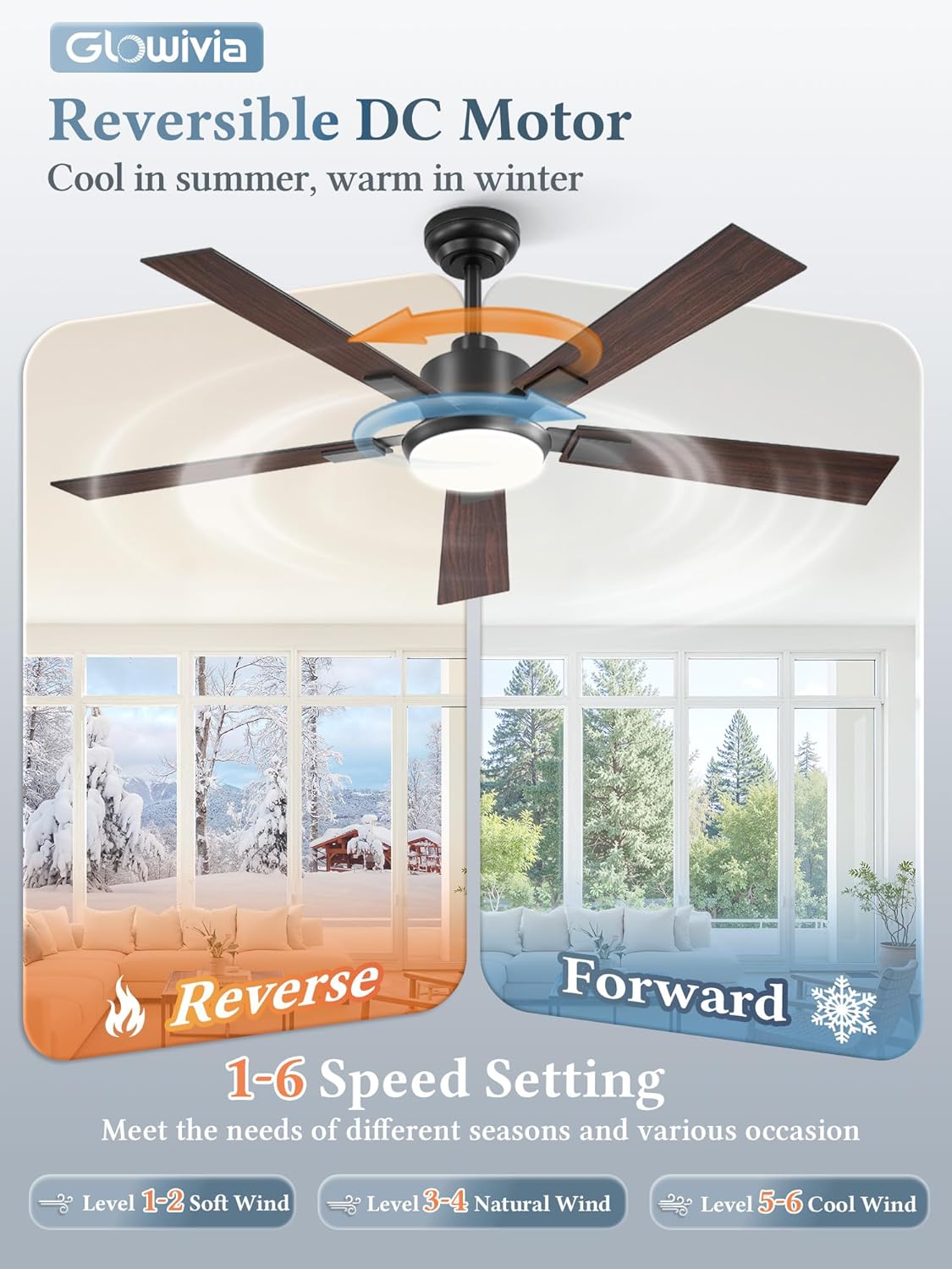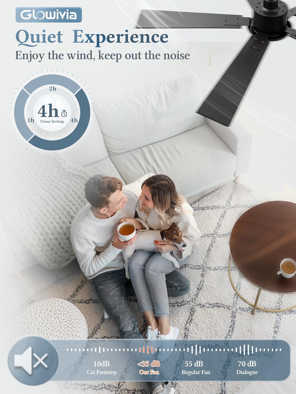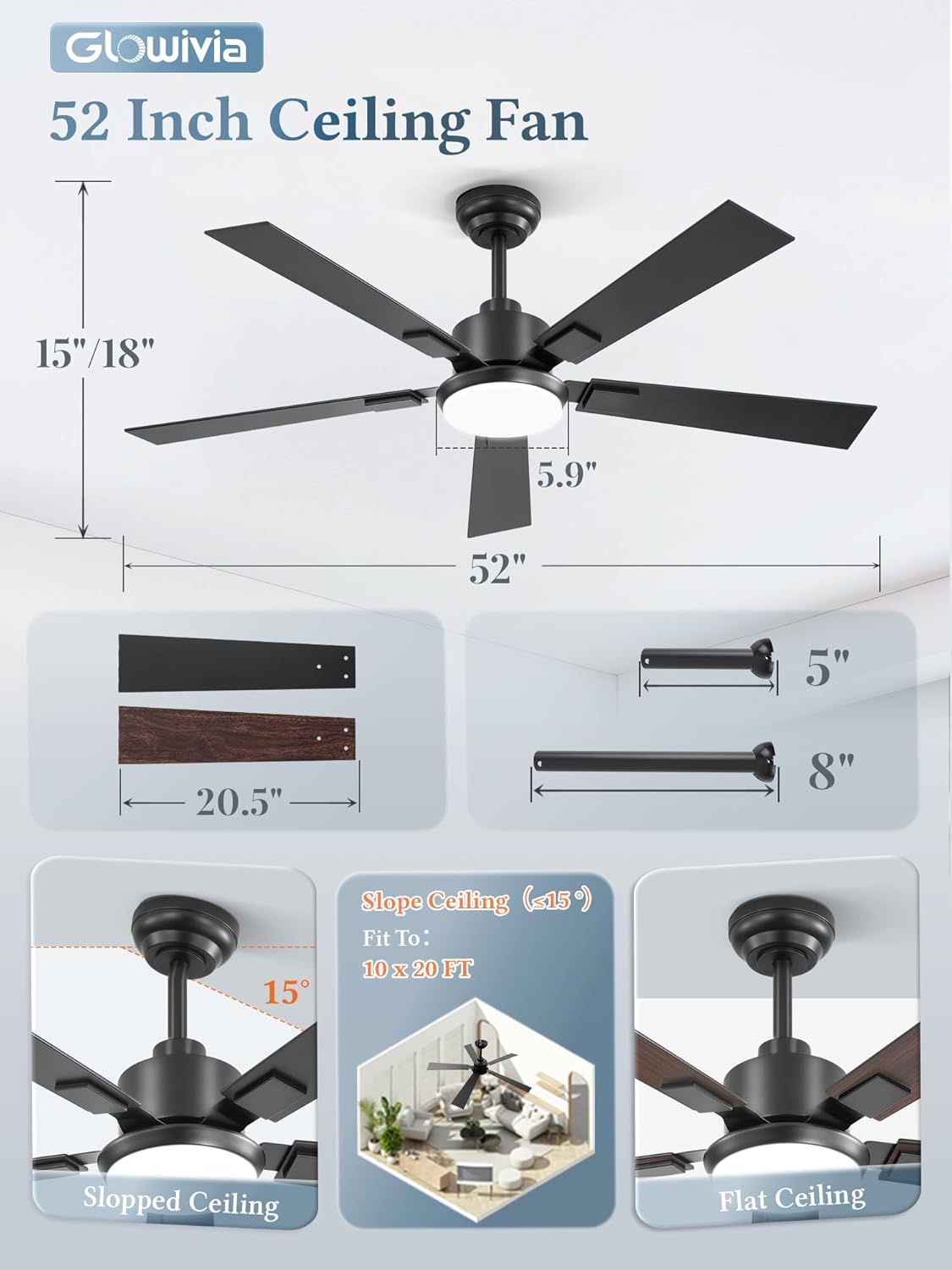 Confident Purchase: This 52 inch ceiling fan with light comes with a 5-year motor warranty and a 2-year warranty on all other parts. At Glowivia, we value our customers’ feedback and are committed to providing a great shopping experience. If you encounter any problems with our products, please don’t hesitate to let us know