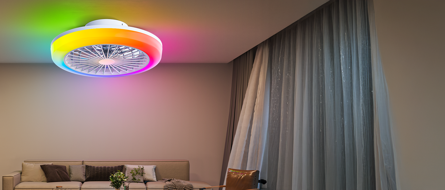 LED Light with RGB & Memory Function: This energy-saving LED fan light delivers 1500 lumens with 0–100% dimming. Choose from warm, neutral, cool white (2700K–6500K) or vibrant RGB colors to match your mood, party vibe, or daily routine. Memory function auto-restores your last setting.