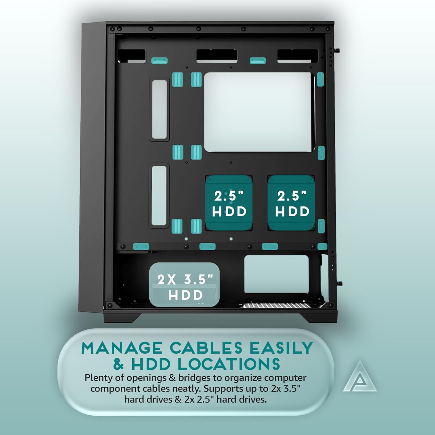 Modern metal mid tower with left-side tempered glass door swivel open style magnetic side panel & front panel tempered glass with airflow design. Plenty of room on the back side to hide and route cables. Can fit graphics cards up to 360mm in length and CPU coolers up to 165mm in height