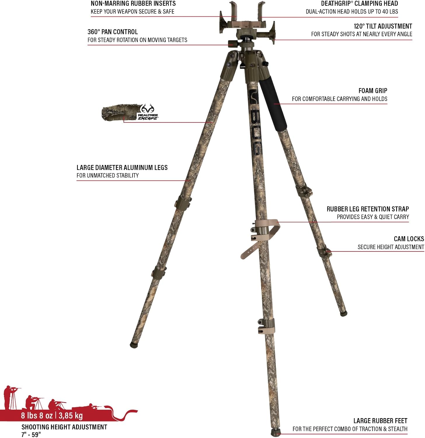 13 reviews for BOG DeathGrip Aluminum Tripod with Durable Frame, Lightweight, Stable Design, Bubble Level, Adjustable Legs, Shooting Rest, and Hands-Free Operation for Hunting, Shooting, and Outdoors