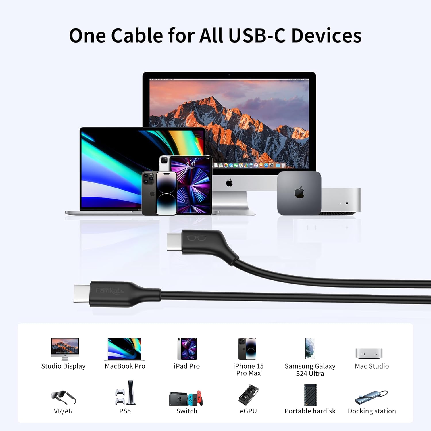 FULL FEATURED 2M USB C CABLE: fairikabe USB C to USB C cable with length of 2m / 6.6ft, enables functions 10GB data transferr + 60w power charge + audio & video transfer. Corresponding function requires your devices’s USBC port also support data transfer, power charging and video function / DP ALT Mode