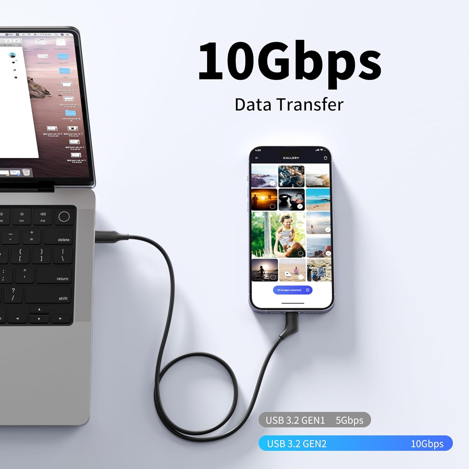 10GB DATA TRANSFER USBC CABLE: USB 3.2 GEN 2 cable support data transfer max up to 10GB, transfer big files in seconds between SSD and pc/laptop. Works on any devices’ USB C port which support data transfer