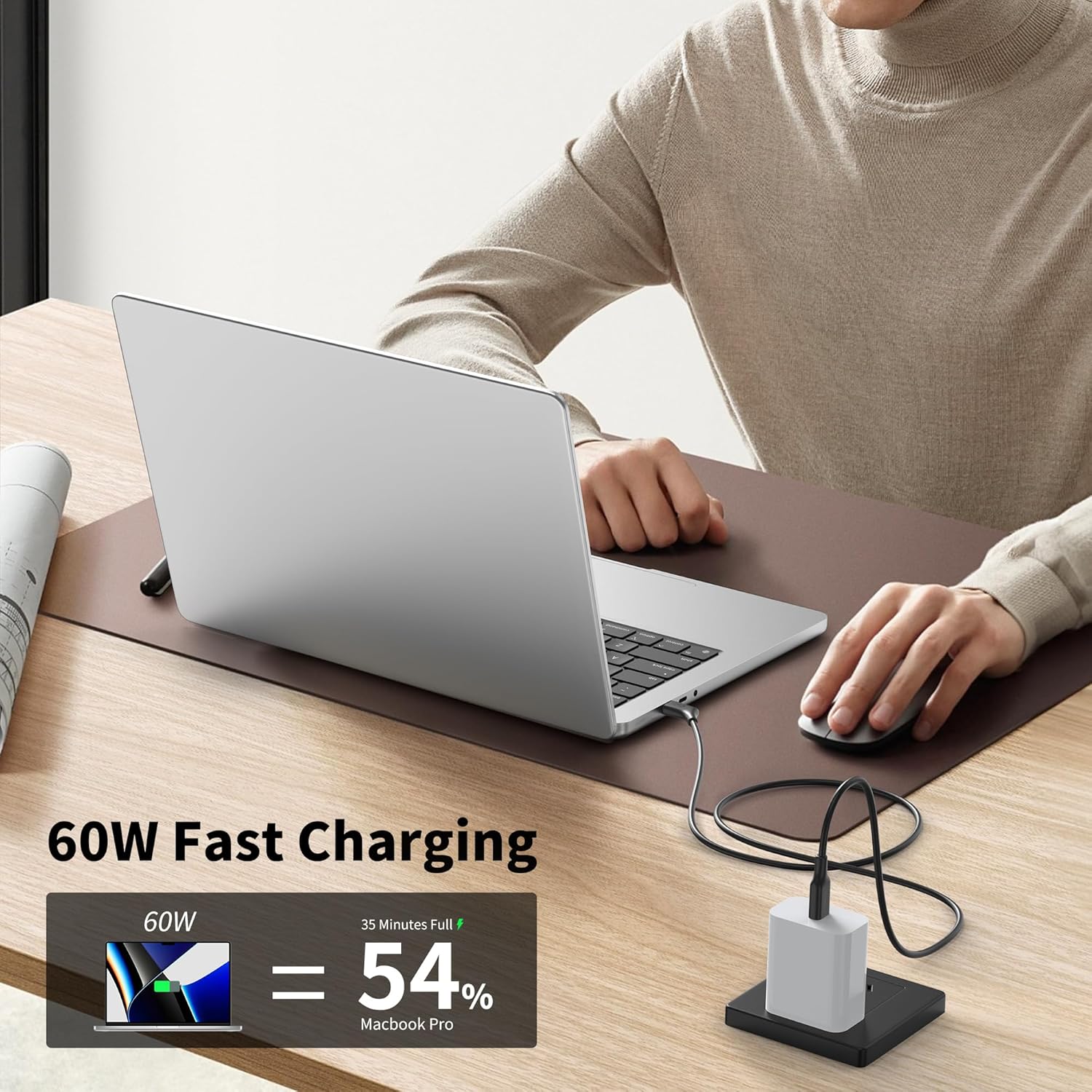 60W FAST CHARGING USB-C CABLE: USB C to C fast charging cable support charging speed max up to 60W, save more time. Charges USB C Phone from 0% to 88% within 35 minutes, iPad Pro 64% within 35 minutes, Macbook air 50% within 35 minutes (charger sold separately, require the charger also support 60w charging speed at least)