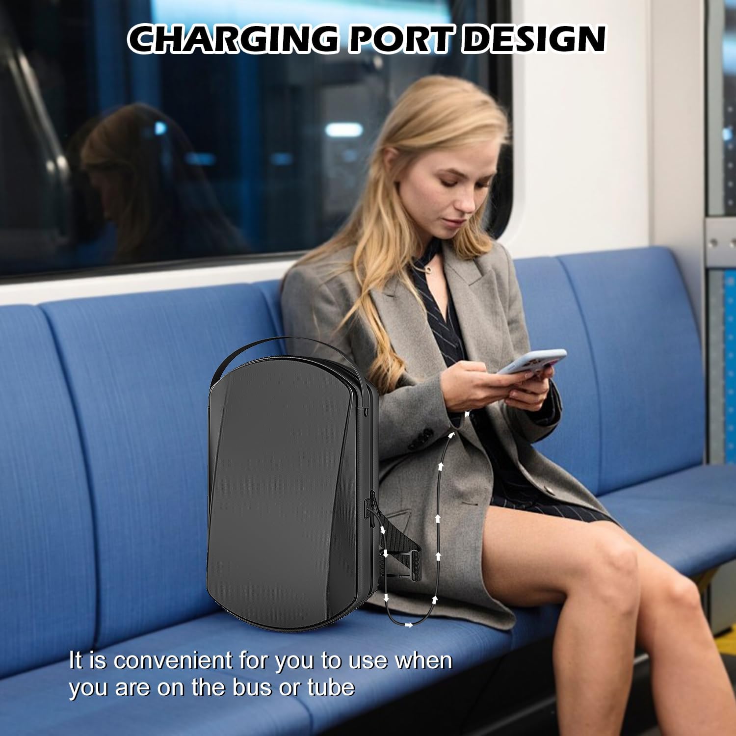 TAKE IT TO ANYWHERE, ANYTIME – It compact 14.3″ x 8.1″ x 5.9″ size fits effortlessly into luggage (as demoed in suitcase image), while the water-resistant surface (with droplet visual) protects devices in all weather conditions.