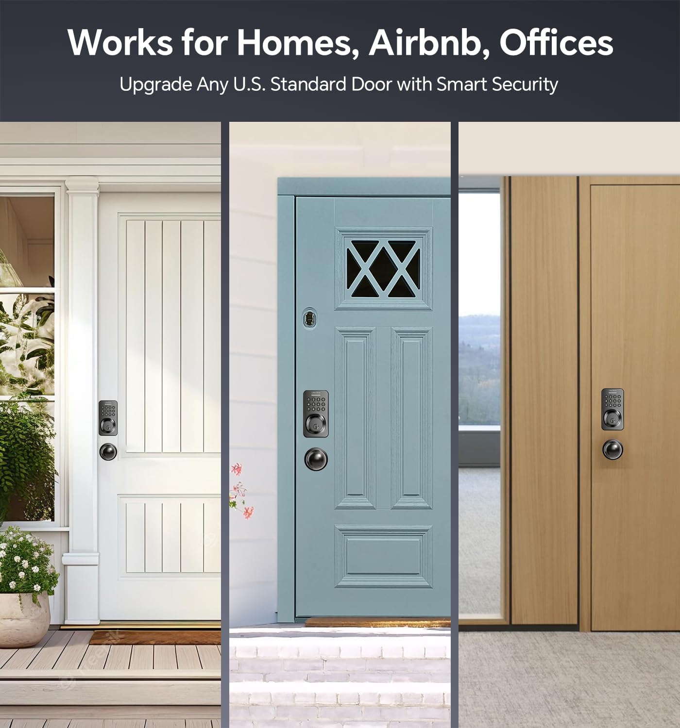 Fits Most U.S. Standard Doors: This door knob with lock is compatible with most U.S. residential and commercial doors—no door modification required. It’s ideal for renovating old apartments or upgrading new homes to a front-door smart lock.