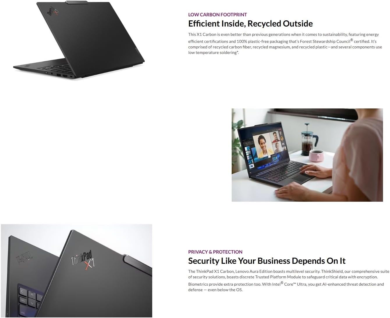 Lenovo ThinkPad X1 Carbon Gen 13 21NS000LUS 14″ Copilot+ PC Ultrabook – 2.8K – Intel Core Ultra 7 258V – Intel Evo Platform – 32 GB – 1 TB SSD – English Keyboard – Black Paint – Intel Chip – 2880 x 18
