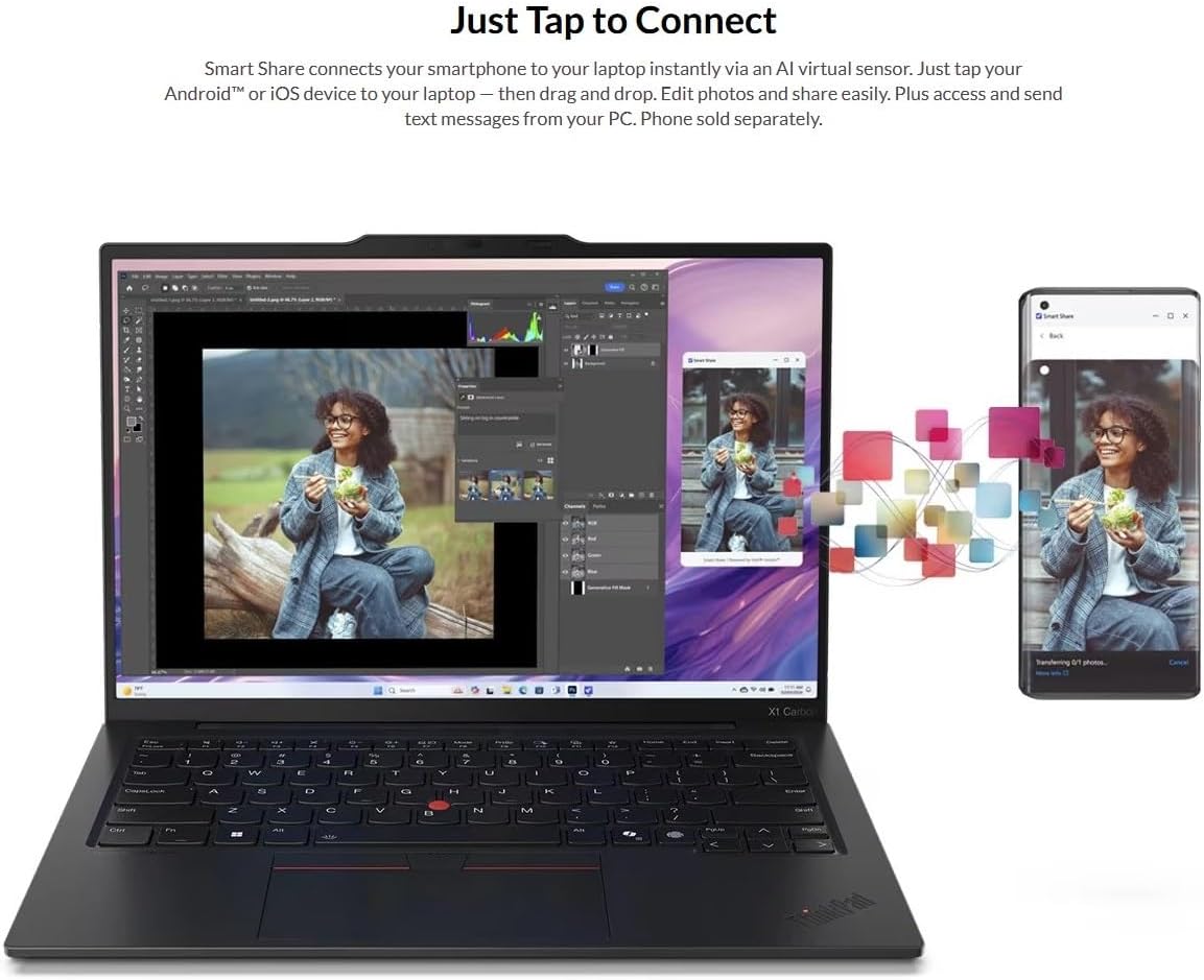 X1 Series | First-class experienceProfessionals who expect the very best from their technology turn to the ThinkPad X1 line-not just for innovation and style, but for uncompromised performance. From ultralight laptops and 2-in-1s, to extreme power devices, to the world’s first foldable PC, X1s raise the bar. And with ThinkPad in their name, reliability and security are standard. Manufacturer: Lenovo Group Limited. Manufacturer Part Number: 21NS000LUS. Brand Name: Lenovo. Product Line: ThinkPad. Product Series: X1 Carbon Gen 13. Product Model: 21NS000LUS. Copilot+ PC: Yes. Product Name: ThinkPad X1 Carbon Gen 13 21NS000LUS. Product Type: Ultrabook. [Technical Information] Release Month: November. Release Year: 2024. AI-powered: Yes. [Processor] Processor Manufacturer: Intel. Processor Type: Core Ultra 7. Processor Model: 258V. Processor Core: Octa-core (8 Core). Maximum Turbo Speed: 4.80 GHz. NPU Name: AI Boost. NPU Performance: 47 TOPS. vPro Technology: No. Intel Evo Platform: Yes. Processor Threads: 8. [Chipset] Chipset Manufacturer: Intel. [Memory] Total Installed System Memory: 32 GB. System Memory Speed: 8533 MHz. System Memory Form Factor: On-board. On-board Memory: 32 GB. On-board Memory Technology: LPDDR5X. [Storage] Drive Type: SSD. Total Solid State Drive Capacity: 1 TB. SSD Form Factor: M.2. [Display & Graphics] Screen Size: 14″. Display Screen Type: OLED. Display Screen Technology: Eyesafe. Standard Refresh Rate: 120 Hz. Screen Mode: 2.8K. Screen Resolution: 2880 x 1800. Brightness: 400 Nit. Color Gamut: 100% DCI-P3. Touchscreen: No. Graphics Controller Manufacturer: Intel. Graphics Controller Model: Arc Graphics 140V. Graphics Memory Technology: LPDDR5X. Graphics Memory Accessibility: Shared. [Network & Communication] Wireless LAN: Yes. Wireless LAN Standard: IEEE 802.11be. Wimax: No. Bluetooth: Yes. WWAN Supported: No. Near Field Communication: No. [Built