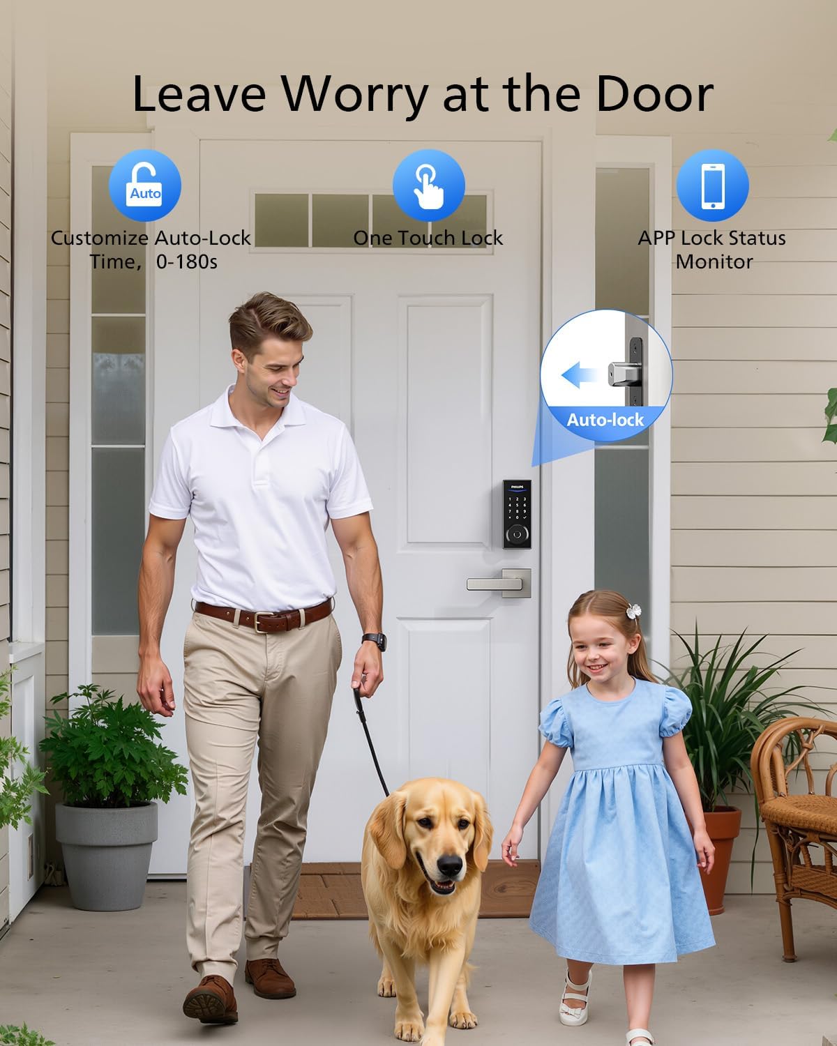 Auto-Lock & One-Touch Lock: Your door automatically locks after closing for ultimate security, or use the one-touch button for instant locking. Always know your door’s status with real-time APP notifications – check whether it’s locked or unlocked anytime, anywhere. Perfect for busy families and peace of mind!