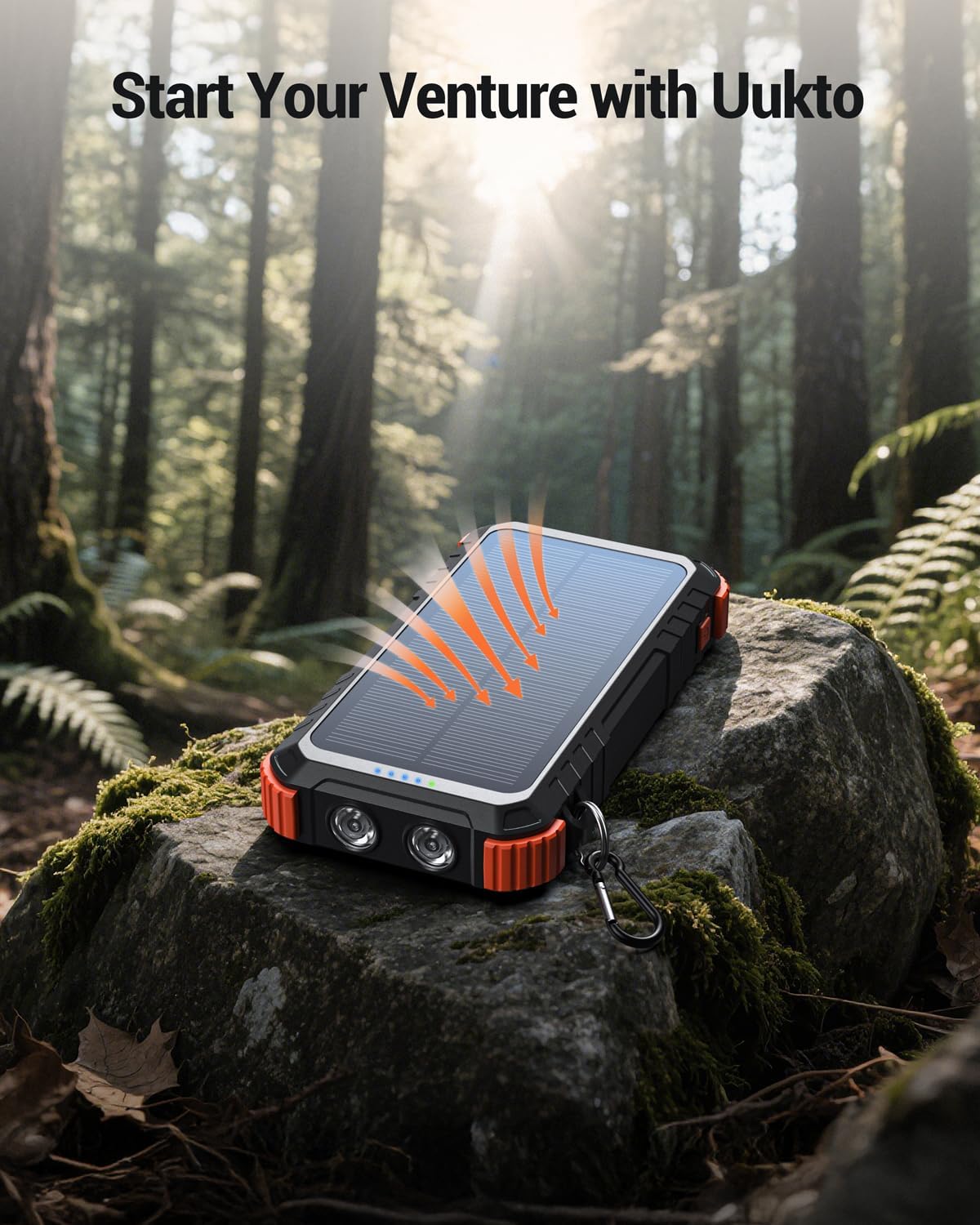 Solar charge: This solar charger power bank is designed for all outdoor explorers, and urban daily uses. Thus, it’s essential to have power when you are at outdoor, solar panel makes it happen, when the battery is drained out, use solar energy to fuel it back to full.