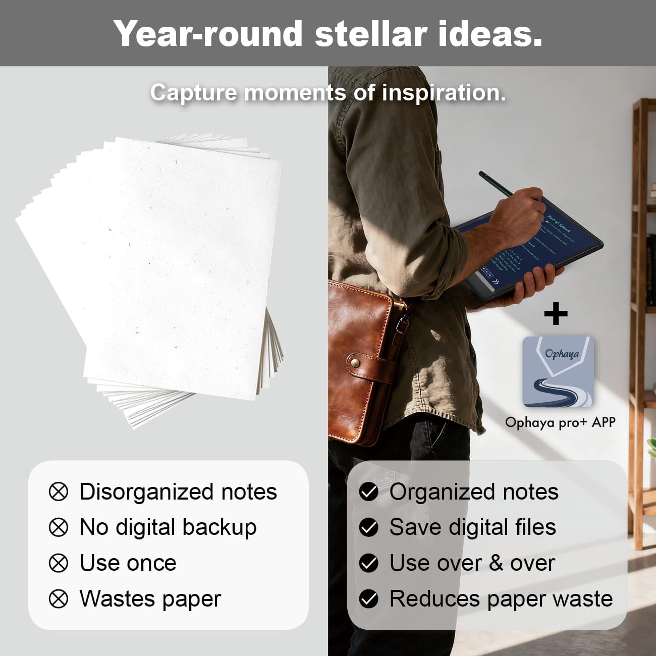 [All-in-One Kit with Instant Mobile Sync] Your paper ro writing board, now with a digital twin. This smart pen note-taking set—featuring a smartpen, writing board paper notebook, and app—acts as a magic bridge. It gives you the tactile pleasure of writing on real paper, with the added power of having a digital copy for easy saving, sharing, and searching on APP(Compatible Ios/Android phone/tablet) . Note: App is not compatible with computers and smartPen requires Ophaya paper.