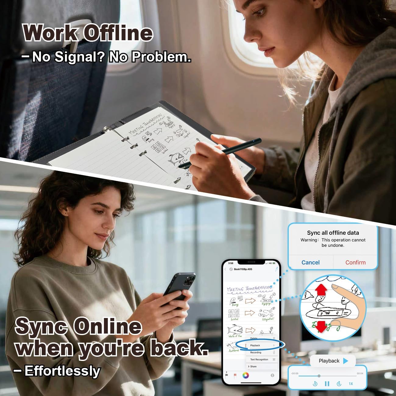 [Audio-Synced Notes for Recall] Never miss a detail. Record audio while you write, and the app intelligently links your notes to the recording. Simply tap on a word to jump to the exact moment in the audio it was written, providing invaluable context for lectures and meetings.