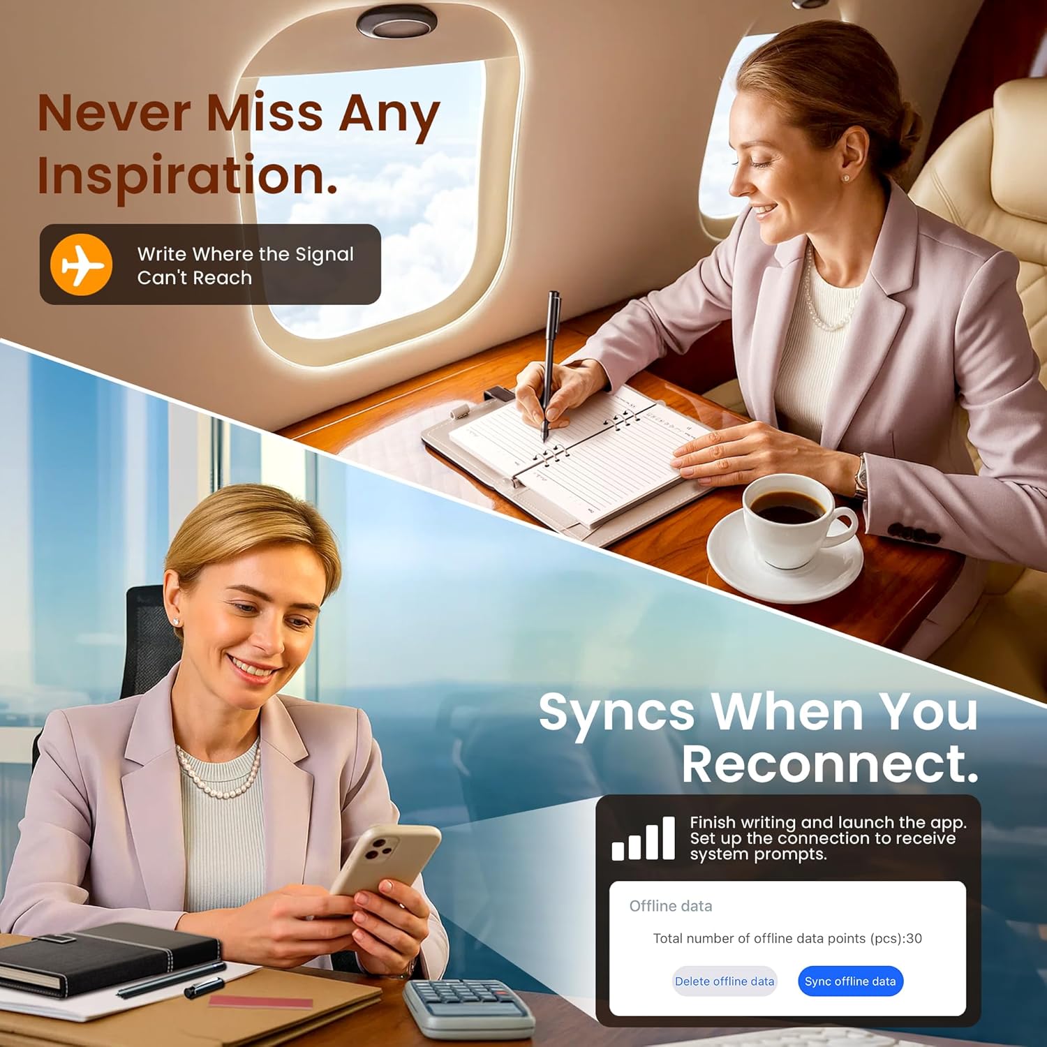 I’ve been using this smart pen for a few weeks now, and it has completely transformed the way I take notes. The handwriting synchronization is super accurate everything I jot down on paper instantly shows up in the app. The OCR feature is impressive too it converts my handwriting into editable text with surprising accuracy, which makes organizing and sharing notes so much easier. I also love that it has offline storage. Even if I forget my phone or don’t have internet, it still saves everything and syncs once I reconnect. Setup was simple, and it works seamlessly. If you’re a student, professional, or just someone who prefers handwriting but needs the convenience of digital organization, this pen is worth every penny.