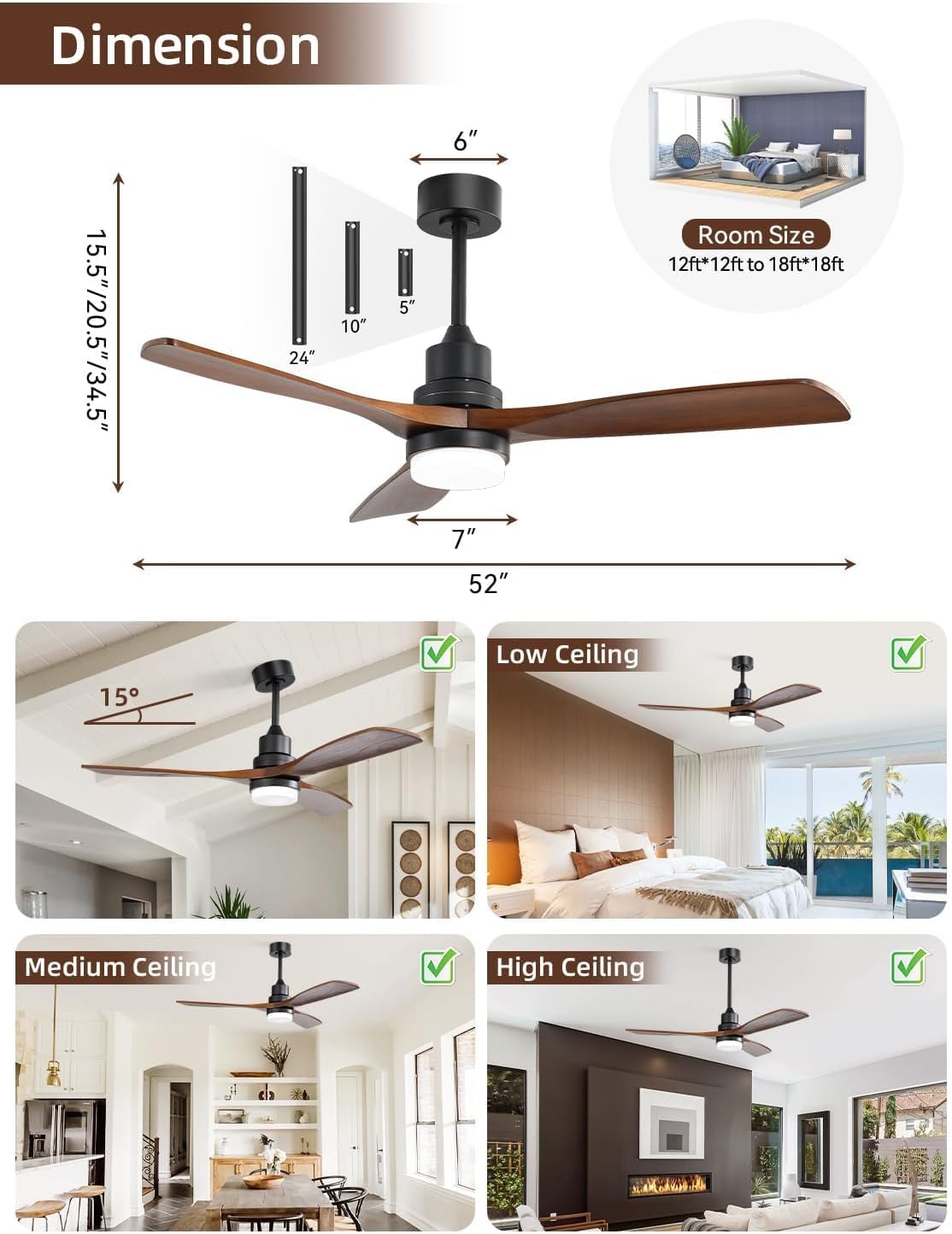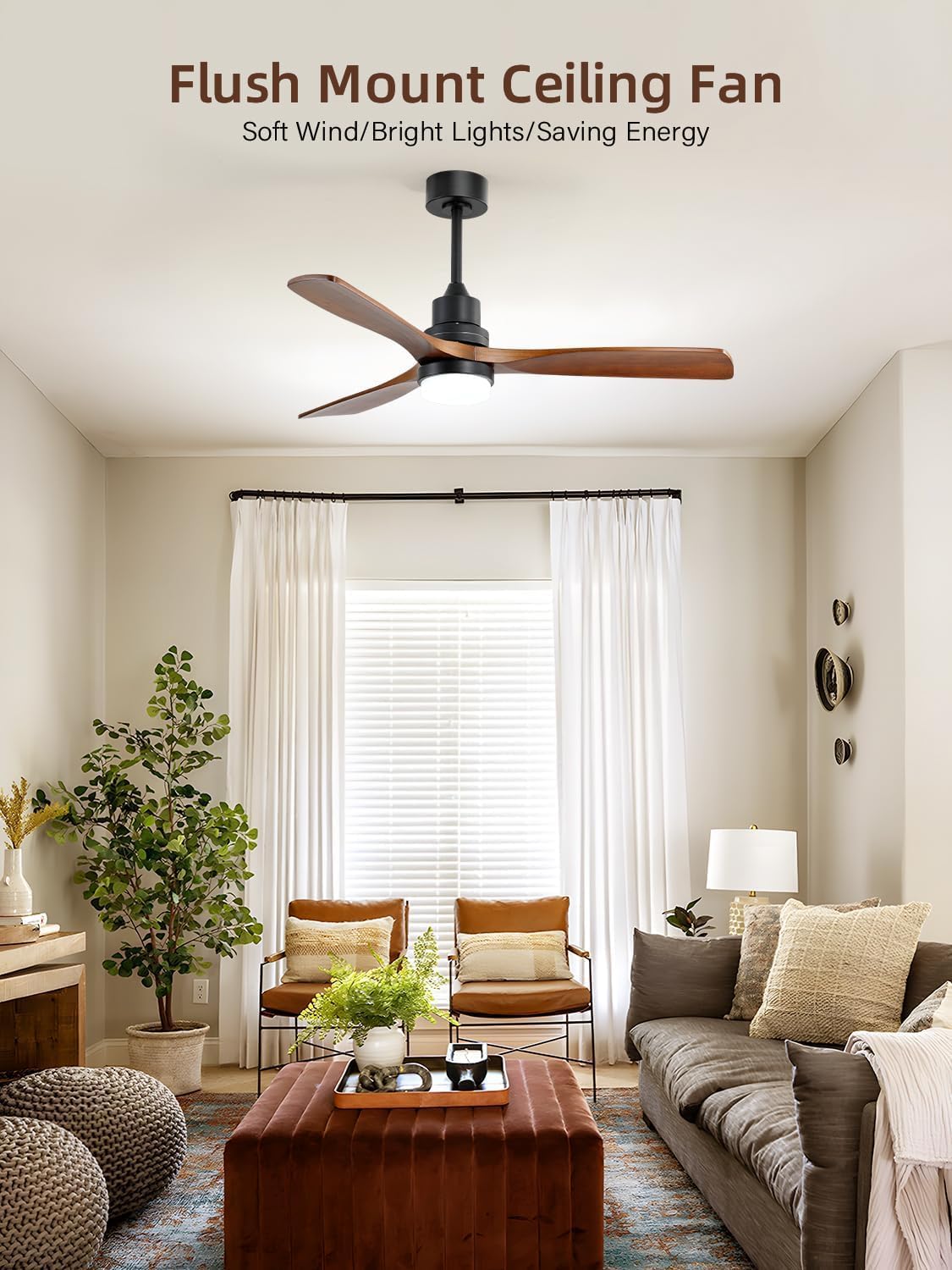 10 reviews for Sofucor 52 Inch Smart Ceiling Fans with Lights and Alexa/Google Assistant/APP/Remote Control-Modern Solid Wood Outdoor Walnut 3 Blades Ceiling Fan for Bedroom Living Room Farmhouse Patio, Brown Black