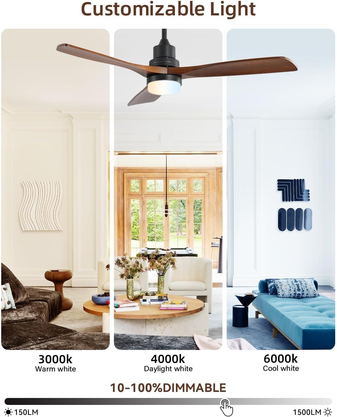10 reviews for Sofucor 52 Inch Smart Ceiling Fans with Lights and Alexa/Google Assistant/APP/Remote Control-Modern Solid Wood Outdoor Walnut 3 Blades Ceiling Fan for Bedroom Living Room Farmhouse Patio, Brown Black