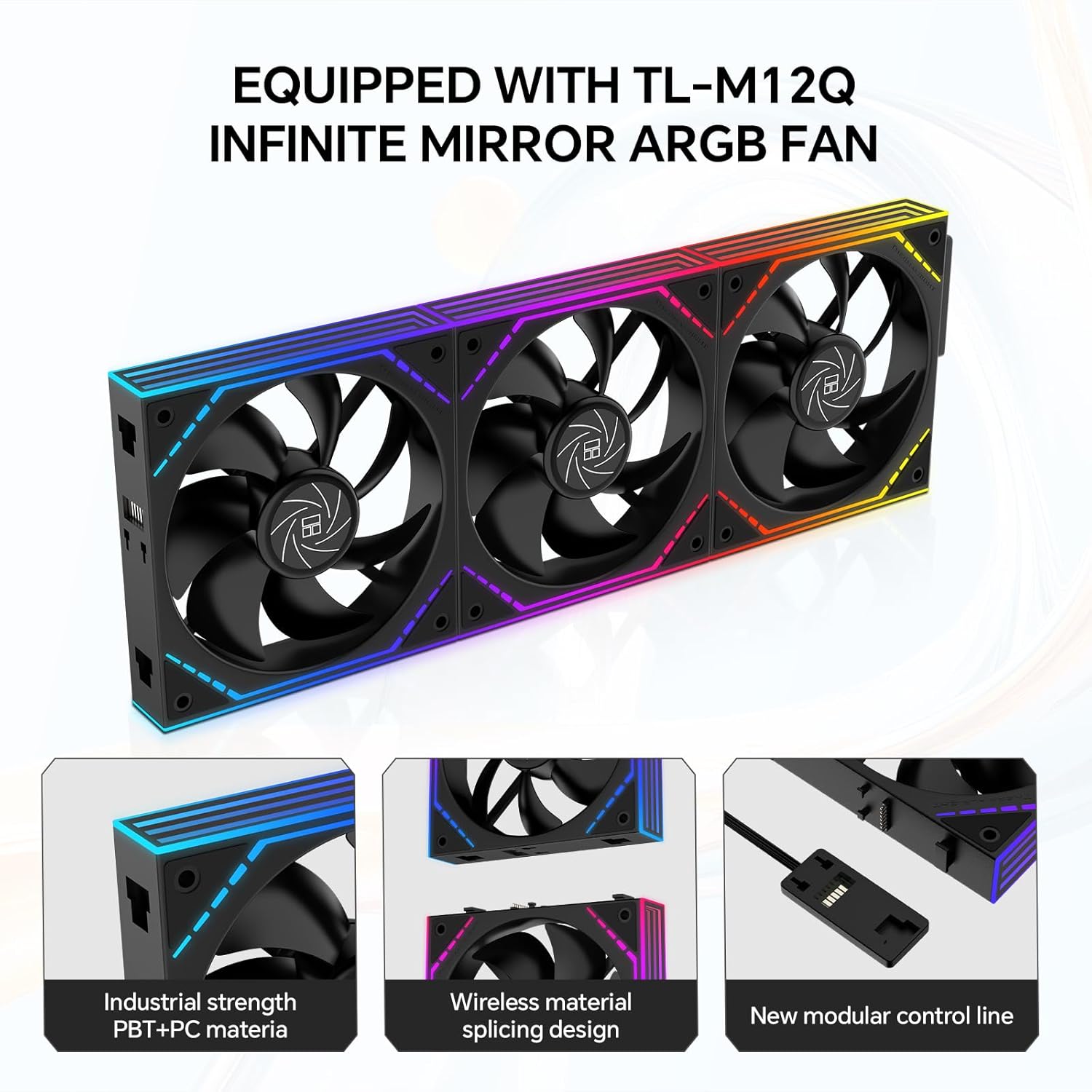 ALL-IN-ONE FAN DESIGN: daisy-chain connection design 2000 RPM TL-M12Q x3 silent fans streamlines installation and lighting control—Reduce wiring clutter, no need to connect individual fans.