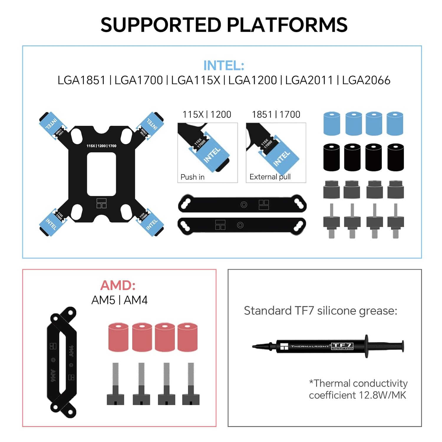 LIQUID LEAK PROOF: Thermalright AIO water cooling system all adopt the brand’s patented anti-leak technology. The pressure relief device in the radiator can discharge the internal air pressure caused by high temperature to prevent your equipment from leaking.