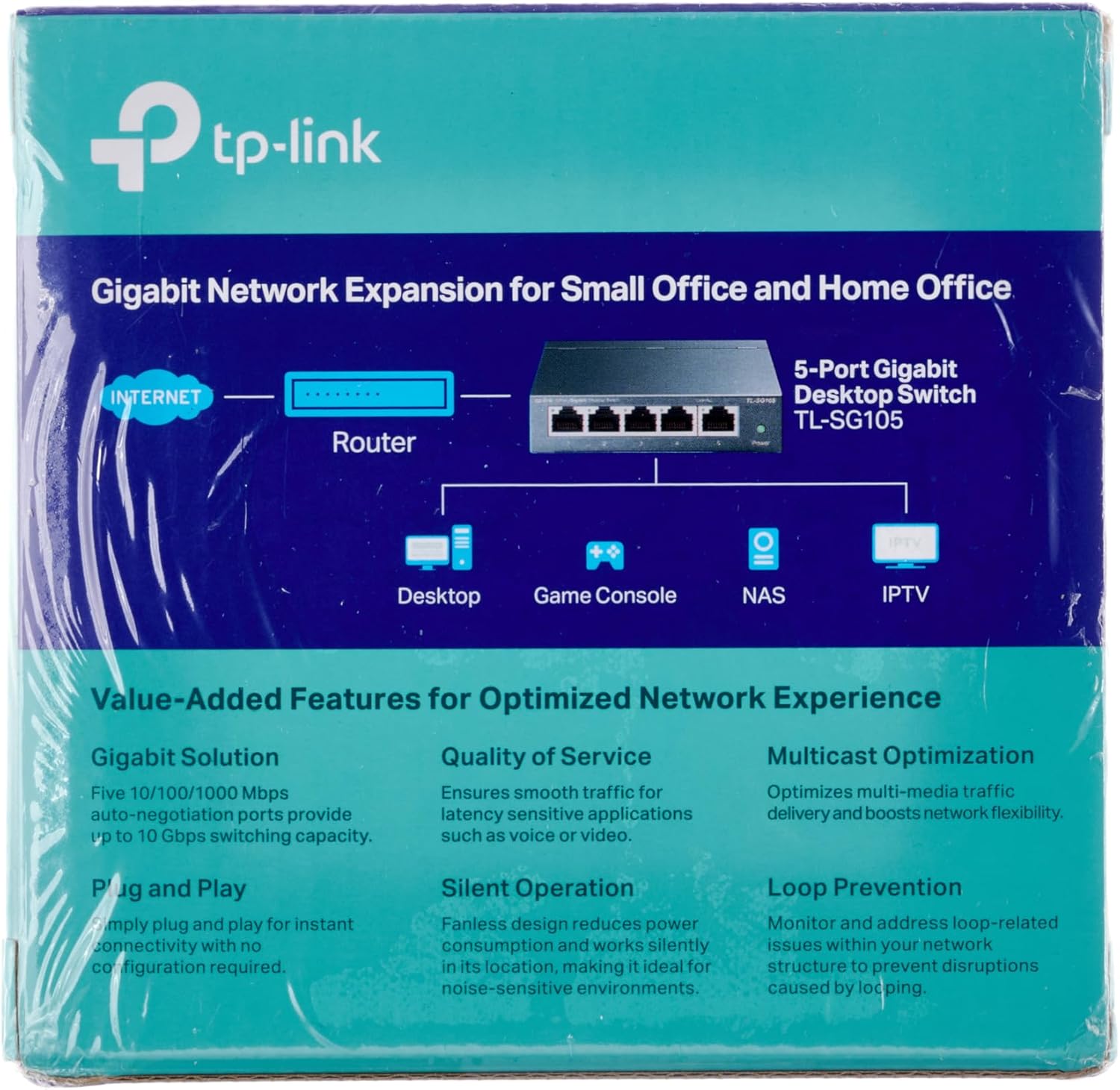 TP-Link TL-SG105, 5 Port Gigabit Unmanaged Ethernet Switch, Network Hub, Ethernet Splitter, Plug & Play, Fanless Metal Design, Shielded Ports, Traffic Optimization