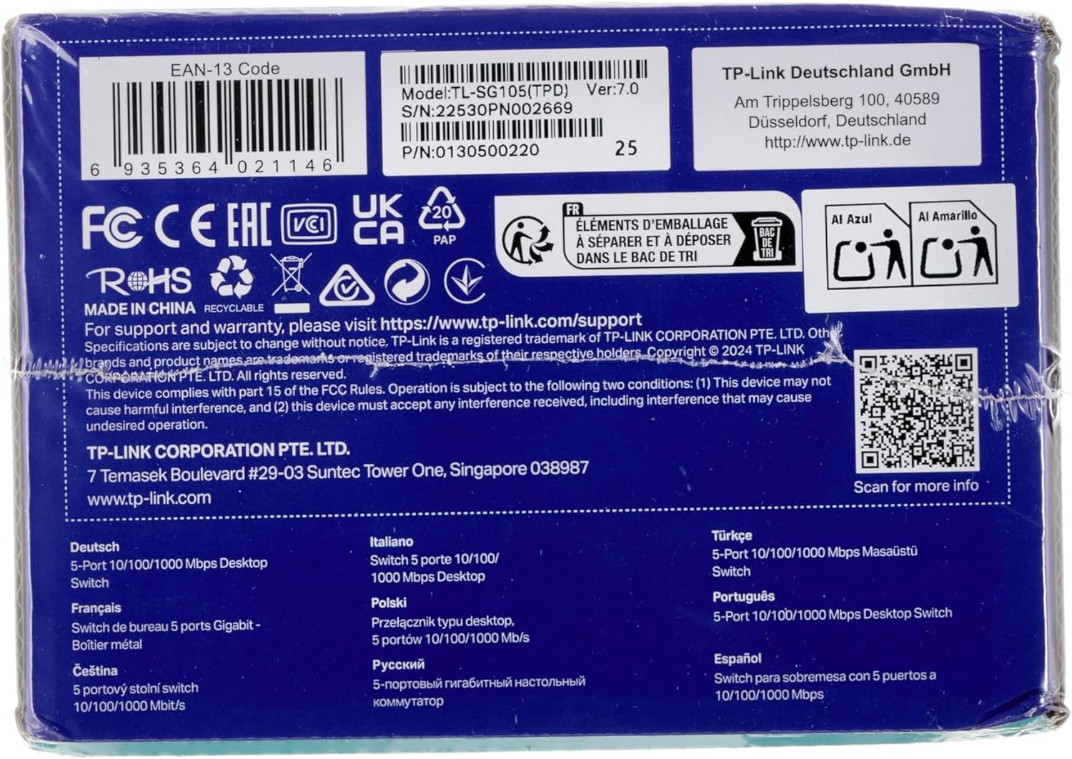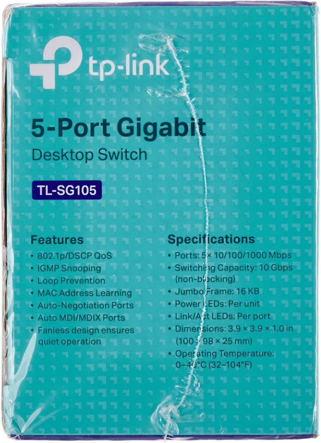 9 reviews for TP-Link TL-SG105, 5 Port Gigabit Unmanaged Ethernet Switch, Network Hub, Ethernet Splitter, Plug & Play, Fanless Metal Design, Shielded Ports, Traffic Optimization