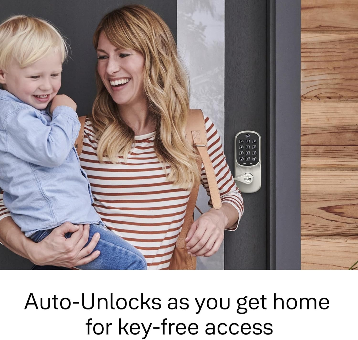 Upgrade your door with the Assure Lock, a smart lock with a sleek touchscreen keypad for key-free entry. The lock has Wi-Fi and Bluetooth so it lets you to lock/unlock, share access and see who comes and goes all using your app, from anywhere! For ultimate convenience, your Assure Lock will unlock automatically as you approach the door and it will relock once the door is closed! Plus, you can lock, unlock or check current status with voice assistants including Amazon Alexa, Hey Google or Siri. The lock features a backlit touchscreen keypad so even when you don’t have your phone, you can unlock your door without the hassle of keys. It’s super easy to use and installs in minutes with just a screwdriver on standard doors (1-3/4″ to 2-1/4″ thick).